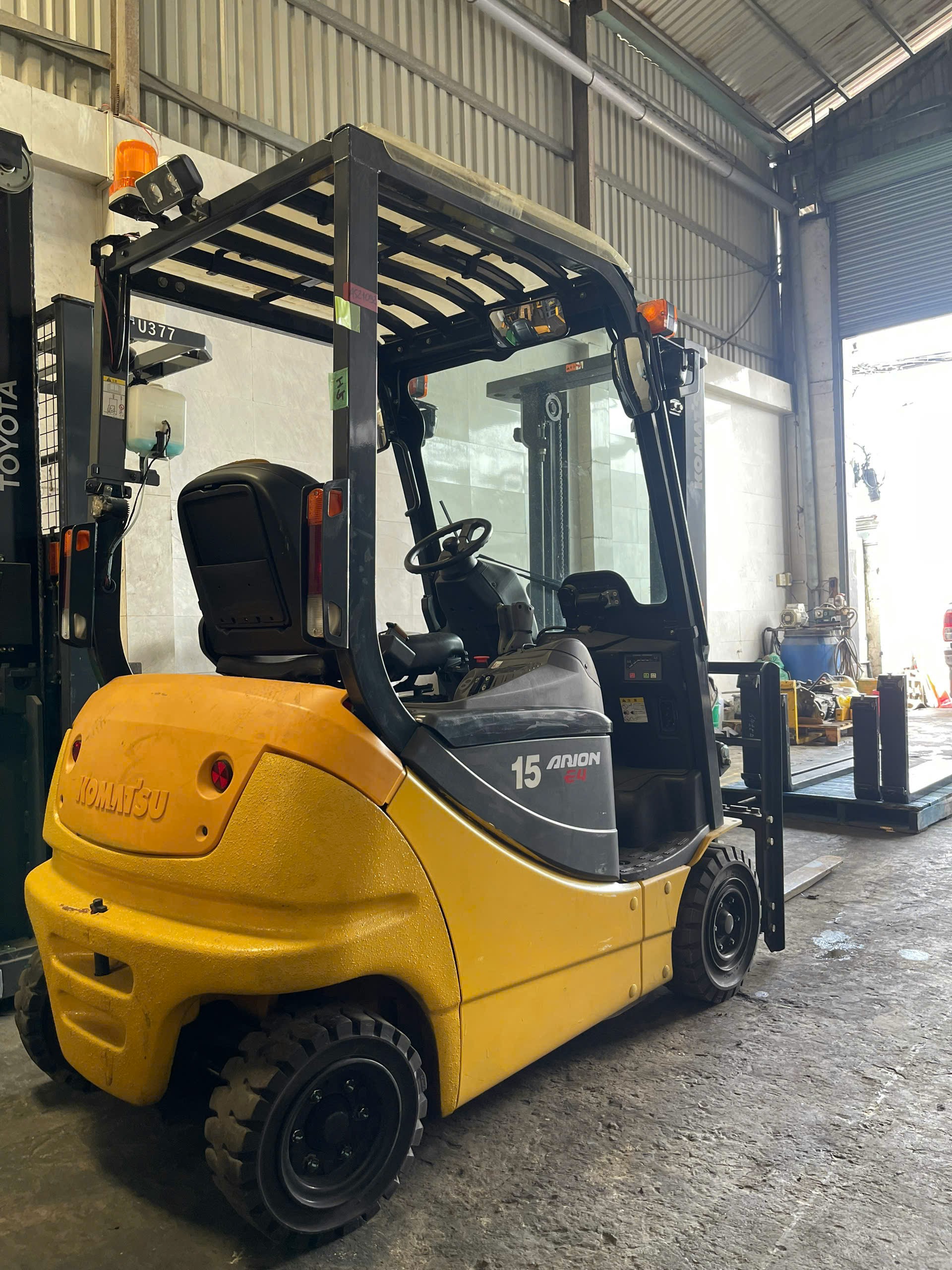Xe nâng điện Komatsu Ngồi lái 1,5 tấn Model FB15-12 là một loại xe nâng điện đứng lái với tải trọng nâng tối đa là 1,5 tấn. Xe được thiết kế để sử dụng trong các kho hàng, nhà máy và trang trại.