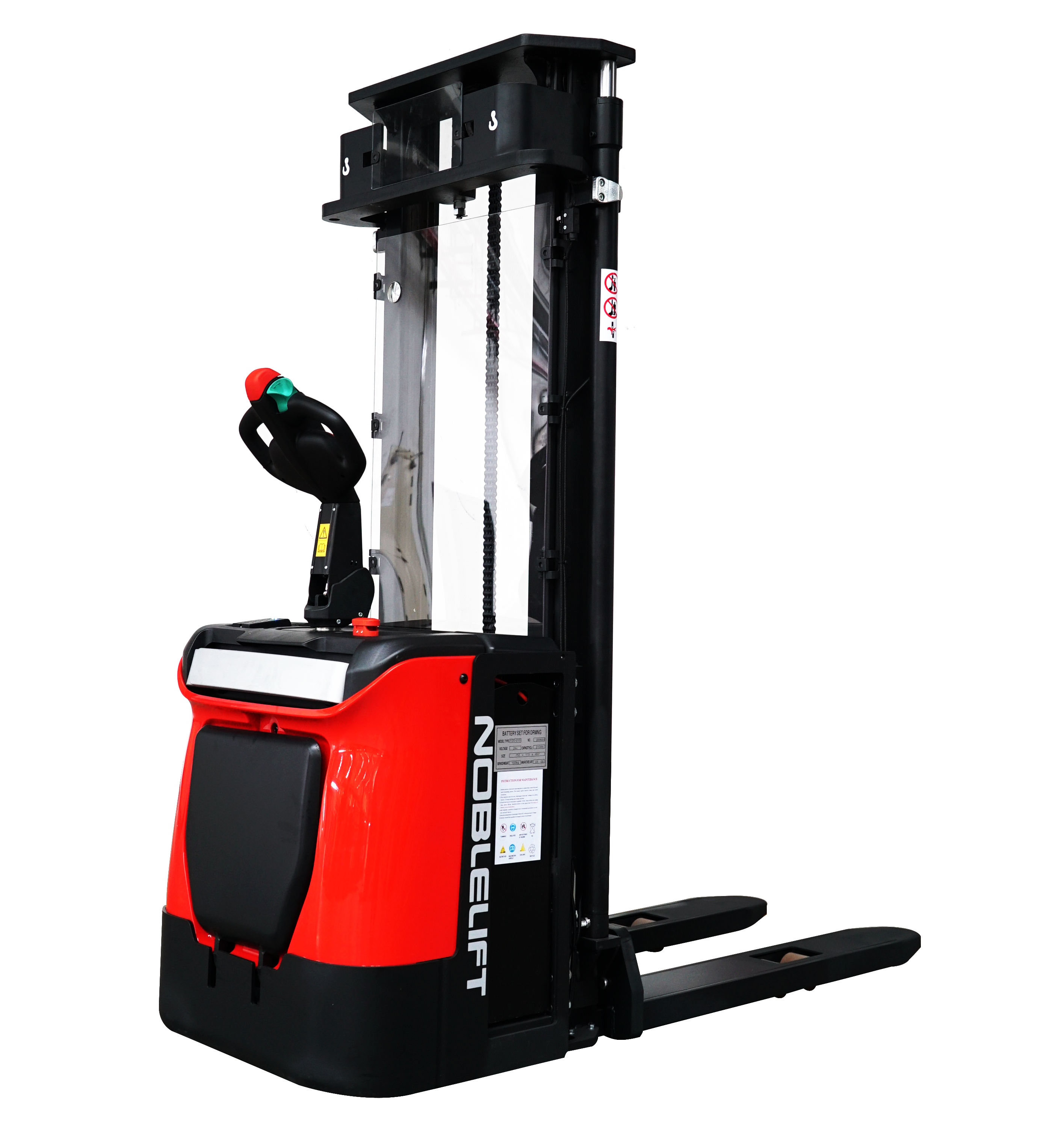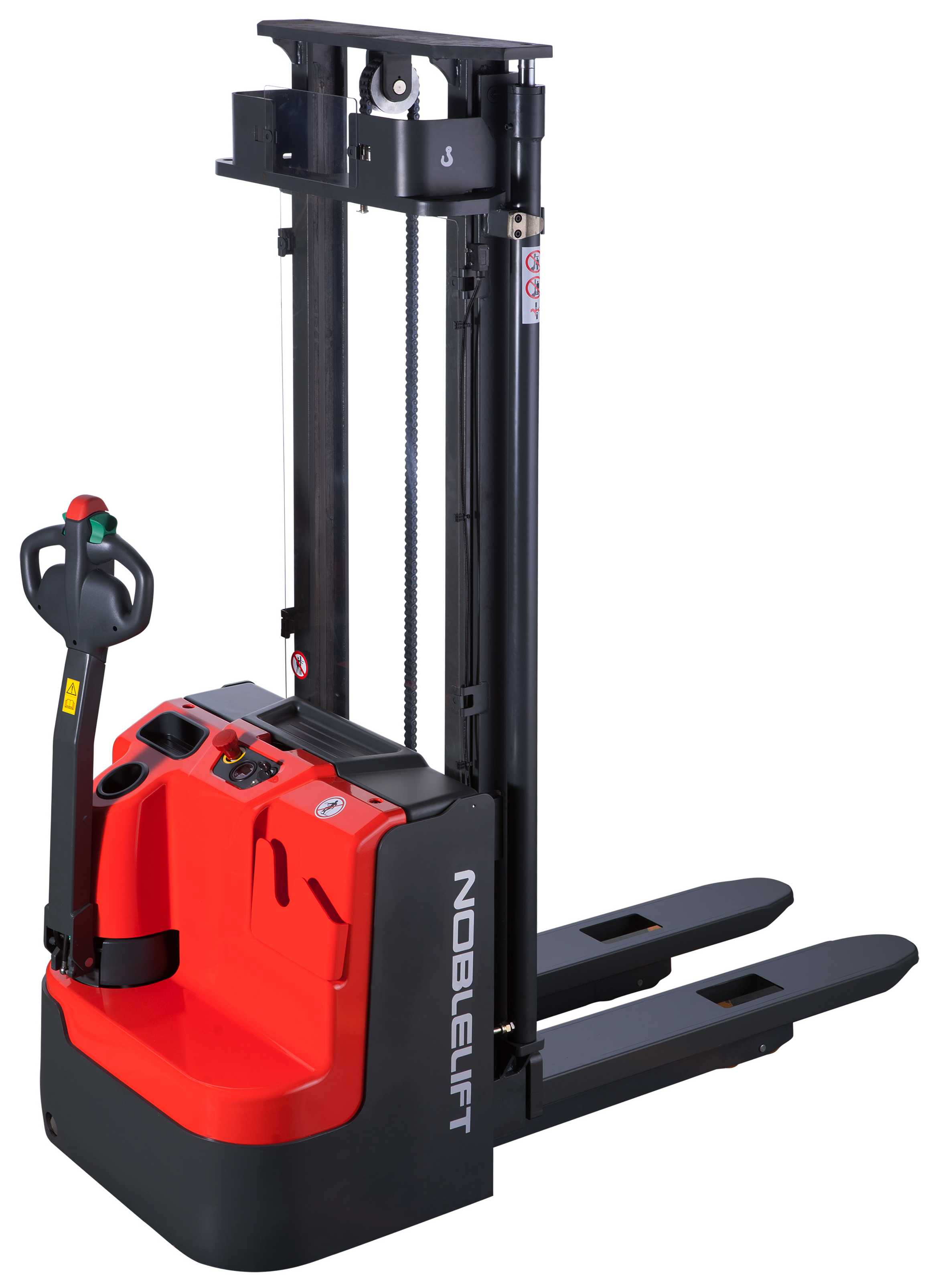 Xe nâng điện Stacker hay còn gọi xe nâng điện cao, Loại xe nâng hàng với mục đích vận chuyển và xếp dỡ hàng hóa trong kệ hàng Kho và Nhà máy xí nghiệp.